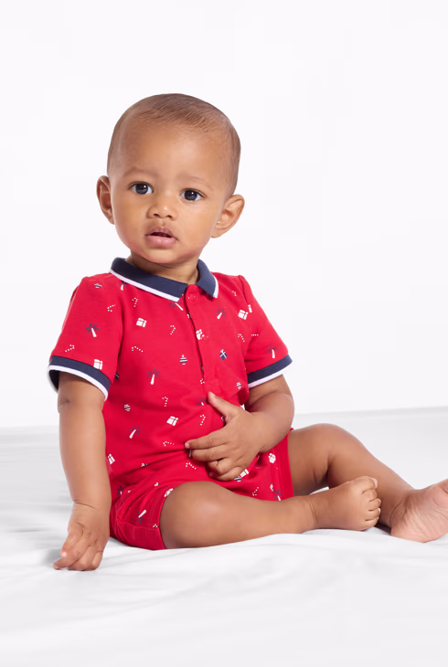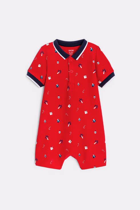 Kurzer Baby-Overall aus Piqué-Strick in Rot für Jungen