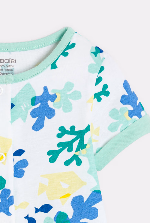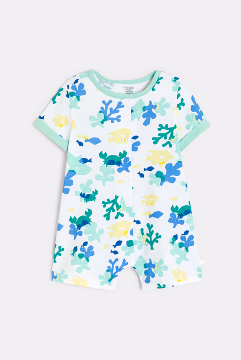 Kurzer blauer Einteiler aus weicher bedruckter Baumwolle Kleinkind Junge