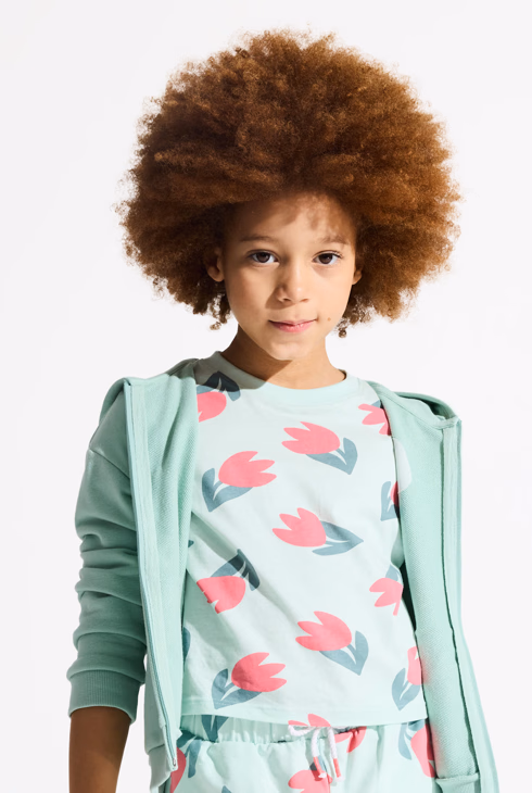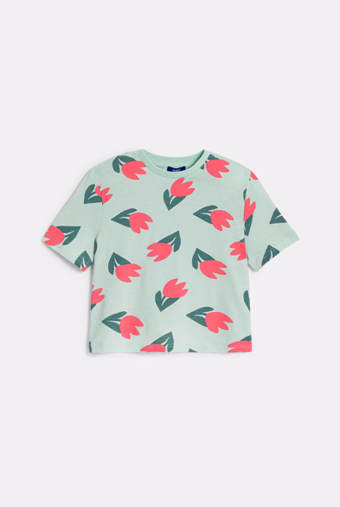 Kurzes T-Shirt in Grün mit Tulpenmotiv für Mädchen