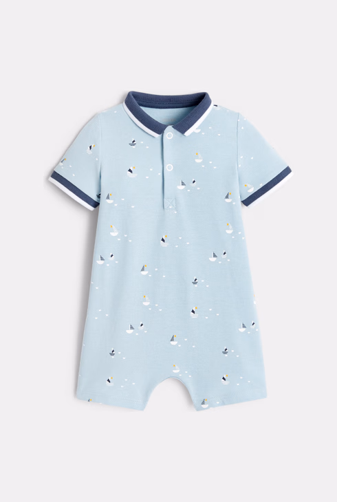 Kurzoverall aus Pikee-Strick Boote Blau Geburt