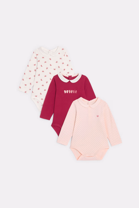 Langarm-Body Schmetterling rosa Kleinkind Mädchen (3er-Pack)