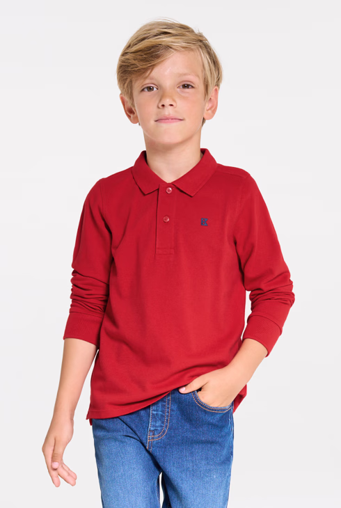 Langarm-Poloshirt aus Pikee-Jersey rot Jungen