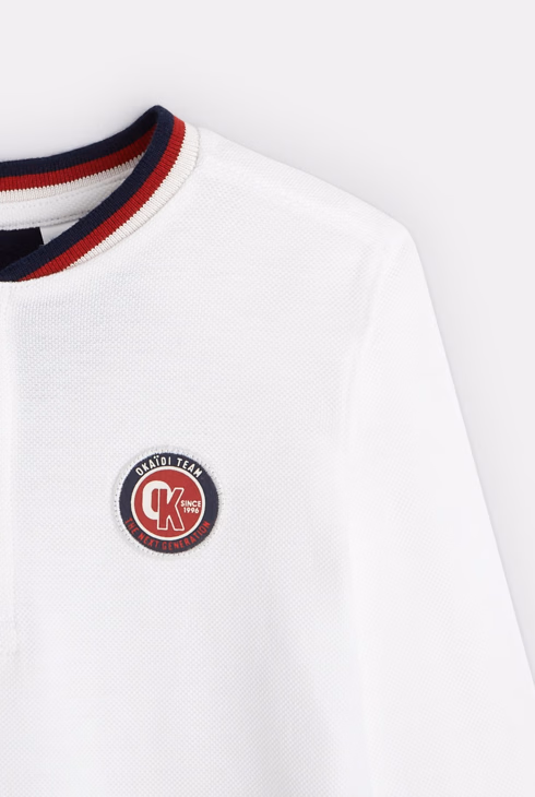 Langarm-T-Shirt mit Aufnäher Weiß Jungen