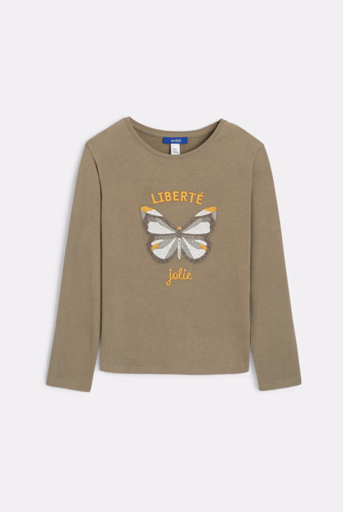 Langärmeliges T-Shirt mit Schmetterlingsmotiv Grün Mädchen