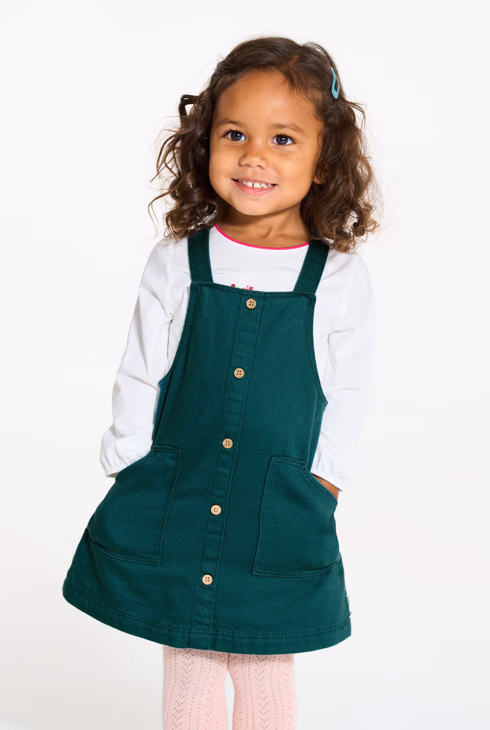 Latzkleid aus grünem Denim Kleinkind Mädchen