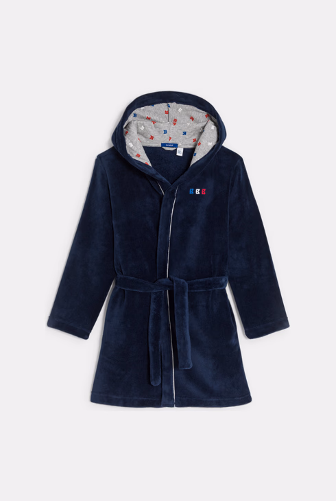 Marineblauer Bademantel aus Fleecemull Jungen
