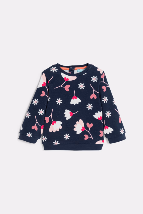 Marineblaues Molton-Sweatshirt mit Blumenmotiv Baby Mädchen