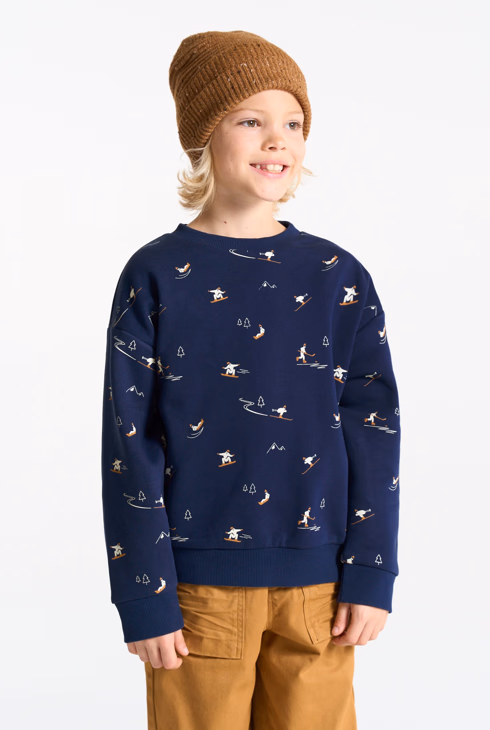 Marineblaues Sweatshirt mit Skimotiv für Jungen