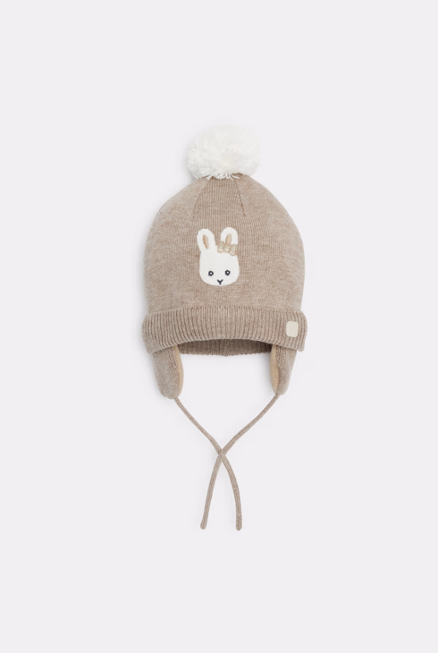 Mit Fleece gefütterte beige Mütze aus Strickgewebe mit Kaninchen Baby Mädchen