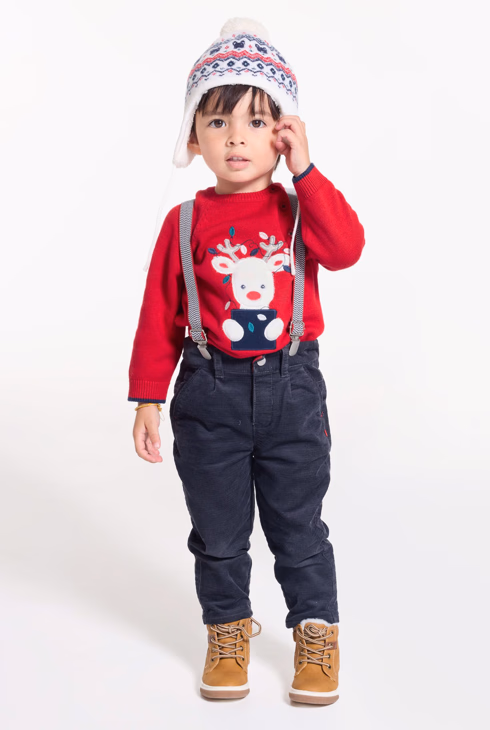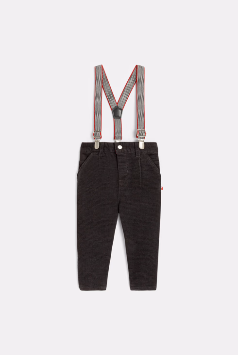 Modische Baby-Samthose in Grau und mit abnehmbaren Trägern für Jungen
