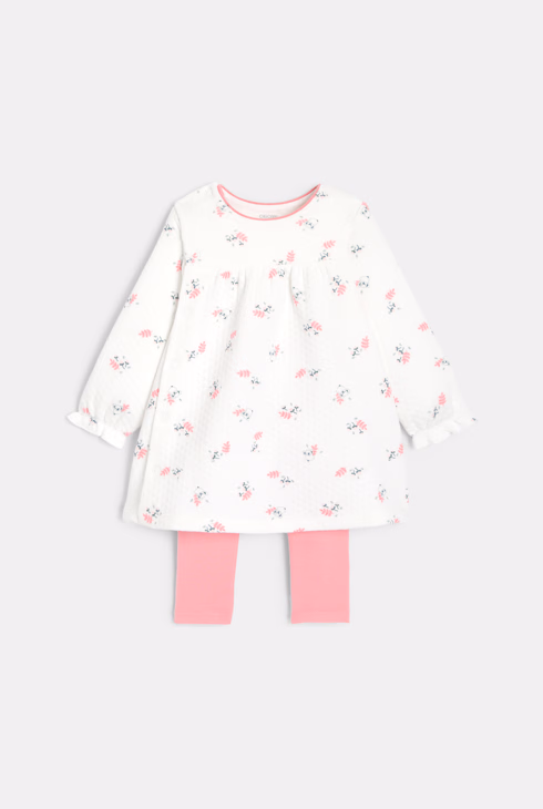 Modisches Babykleid mit Pandamotiv und dazu passende Leggings in Rosa für Mädchen