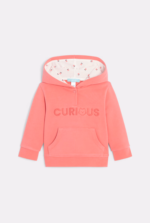 Molton-Sweatshirt mit Kapuze bestickt rosa Baby Mädchen