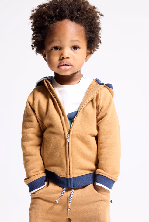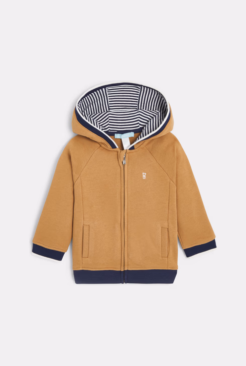 Molton-Sweatshirt Reißverschluss Kapuze braun Baby Jungen
