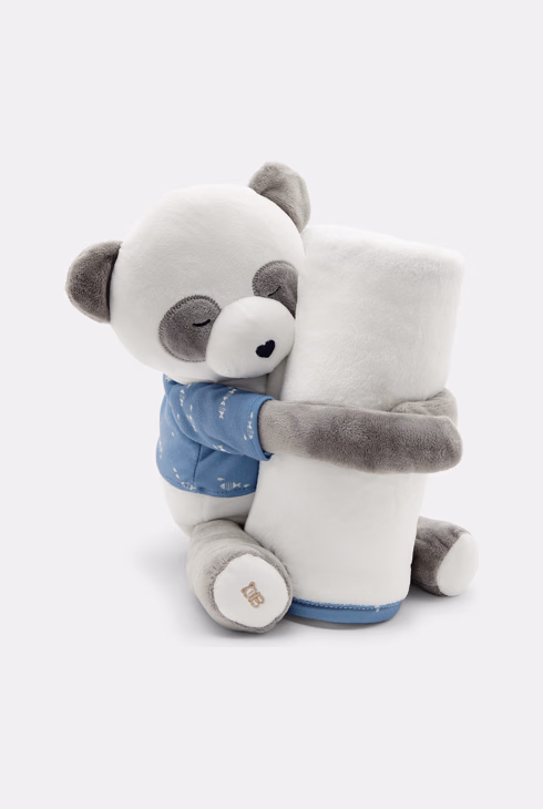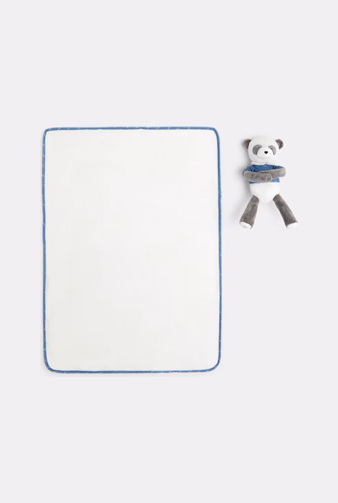 Panda-Stofftier und weiße Fleece-Decke Baby Geburt