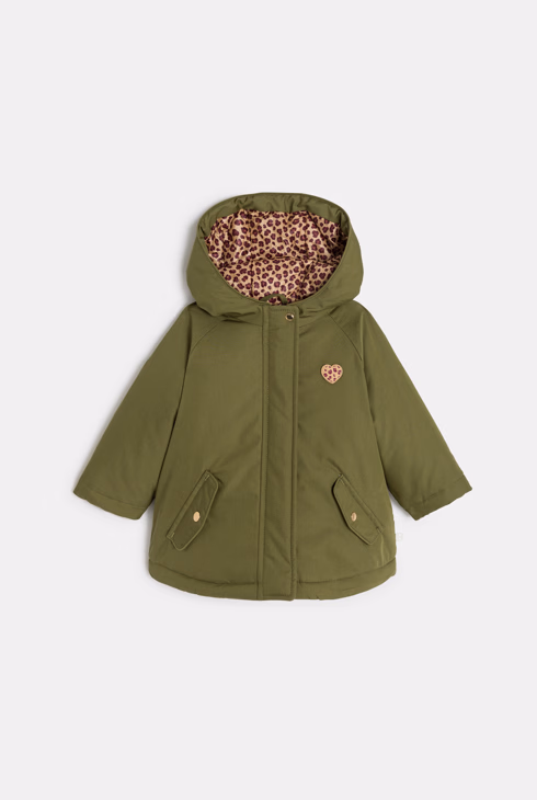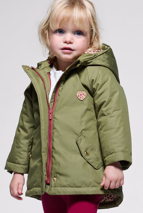 Parka Futter herausnehmbare Weste Leopard khakigrün Kleinkind Mädchen