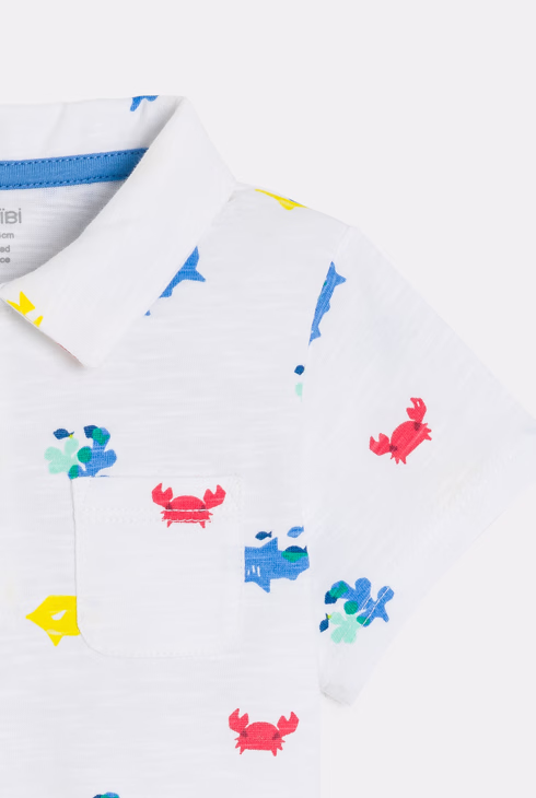 Poloshirt aus leichtem Jersey mit Tieren Weiß Kleinkind Junge
