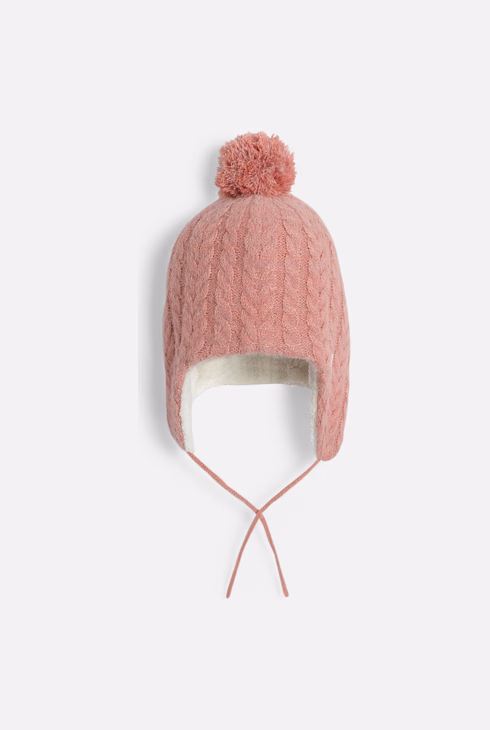 Rosa glitzernde Peru-Mütze mit Zopfmuster für Mädchen