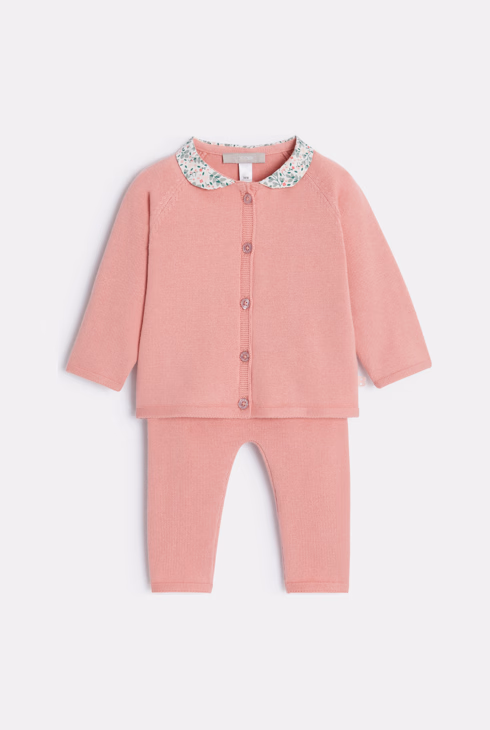 Rosa Set mit Weste und Hose aus Strick Kleinkind Mädchen