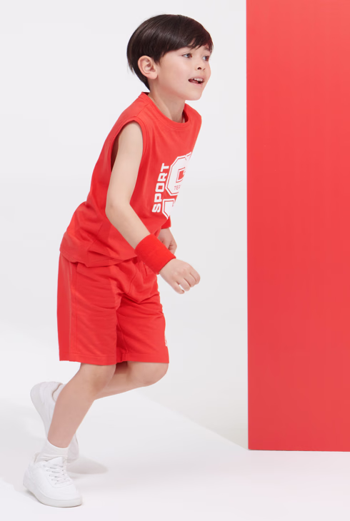 Rote Bermuda-Shorts aus Molton für Jungen.