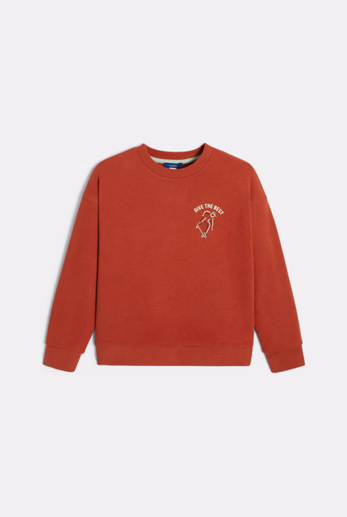 Rotes Sweatshirt mit Schriftzug und Motiv Jungen