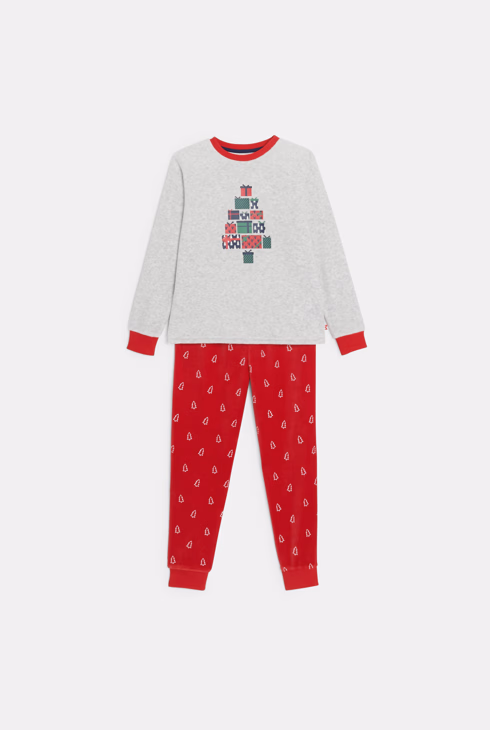 Samt-Pyjama rot Weihnachtsmotiv Jungen