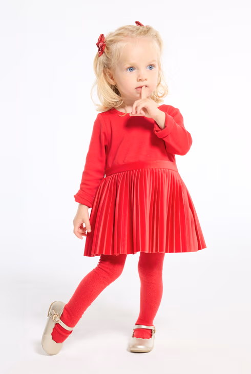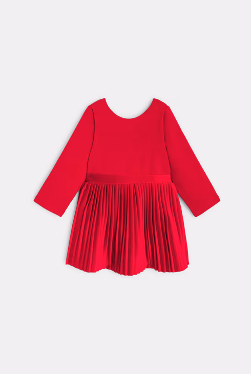 Schickes plissiertes rotes Kleid aus zwei Materialien