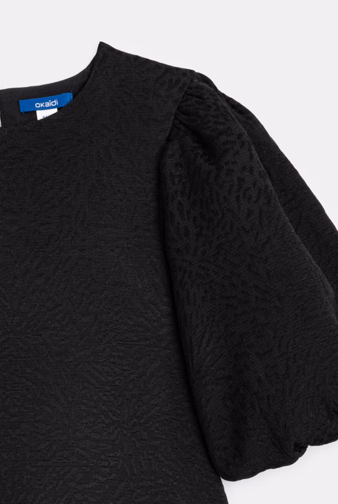Schwarzes Kleid mit gebauschten Ärmeln für Mädchen