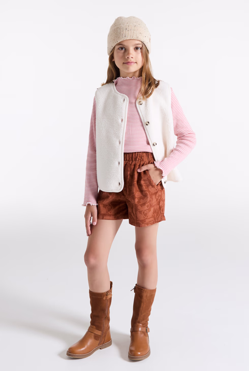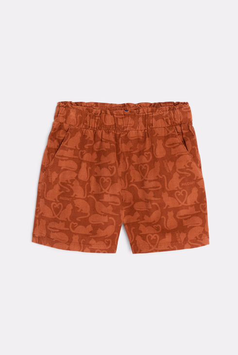 Shorts braun hoher Bund Katzenmotiv Mädchen