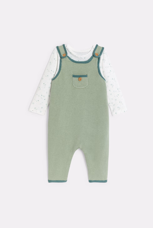 Strick-Latzhose und Body grün Kleinkind Geburt Junge