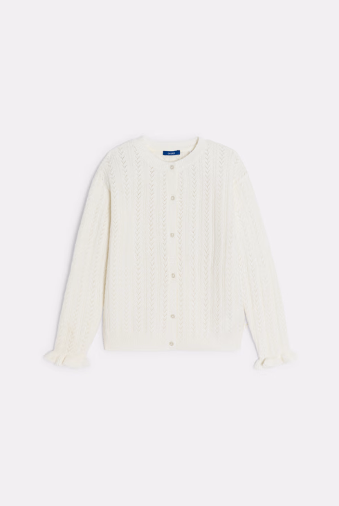Strickjacke Lochmuster Pointelle ecru Mädchen