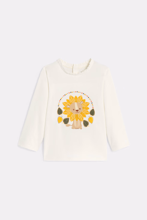 T-Shirt aufgestickter Löwe weiß Baby Mädchen