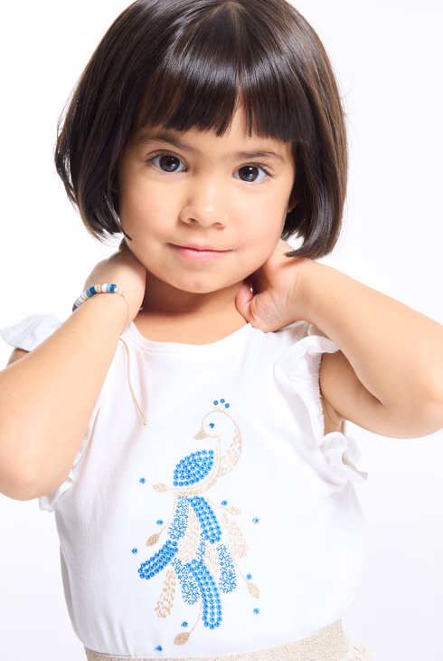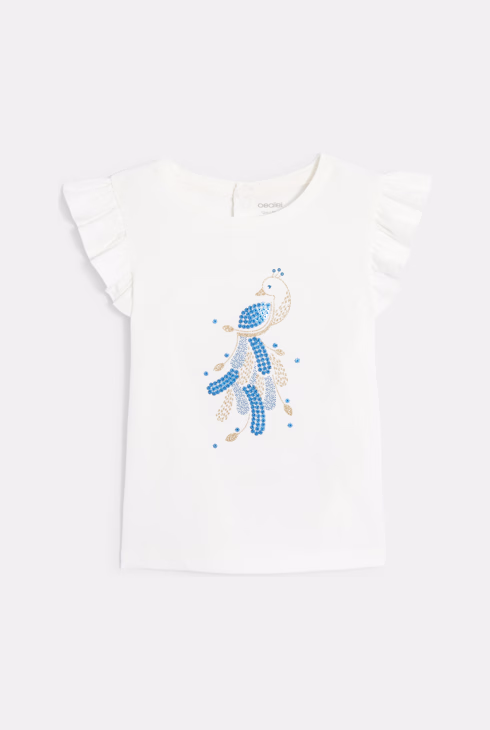 T-Shirt glänzender Pfau weiß Baby Mädchen