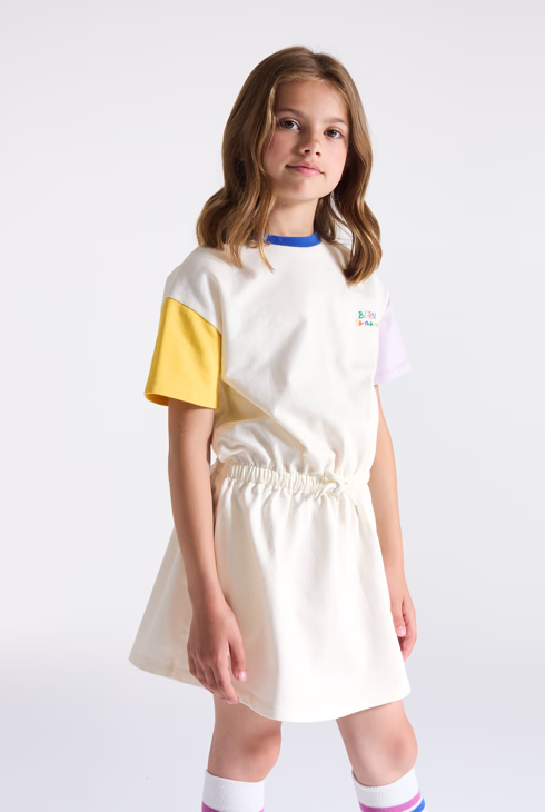 T-Shirt-Kleid mit aufgesticktem Schriftzug weiß Mädchen