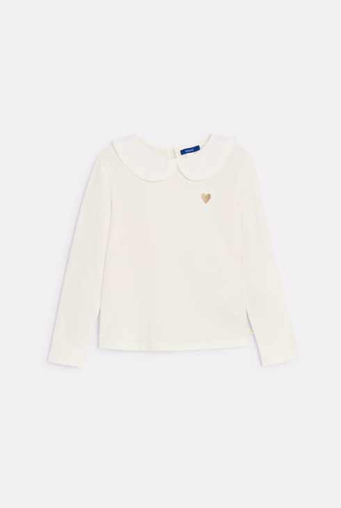 T-Shirt lange Ärmel Bubikragen weiß Mädchen