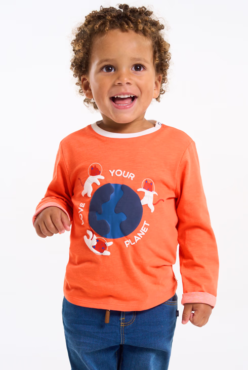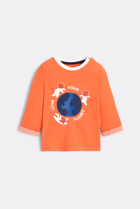 T-Shirt mit Astronautenkatzen Orange Baby Jungen