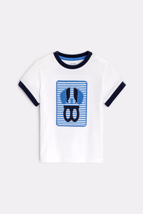 T-Shirt mit aufgesticktem Hund Weiß Baby Jungen