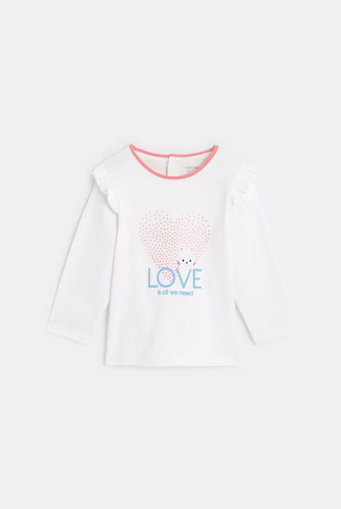 T-Shirt mit Herzmotiv und Volants Weiß Baby Mädchen