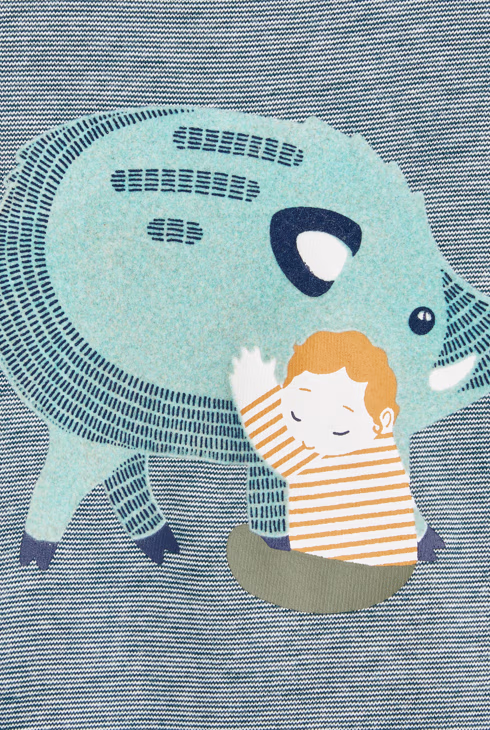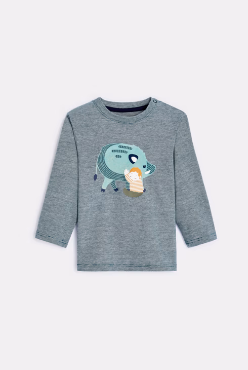 T-Shirt mit schmalen Streifen Wildschwein Grün Baby Jungen