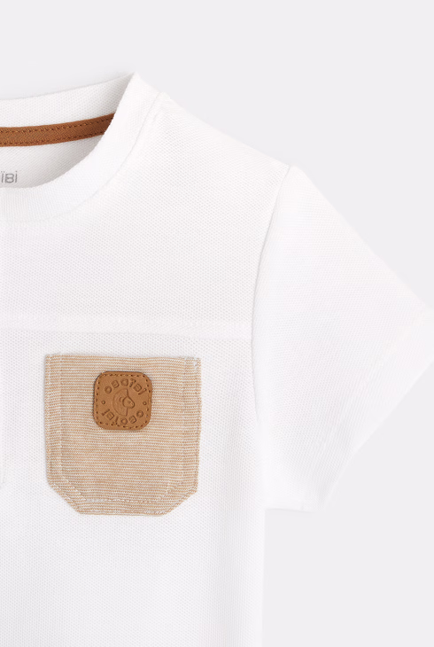 Tunesisches Poloshirt aus Piqué-Strick mit Tasche Weiß Baby Jungen