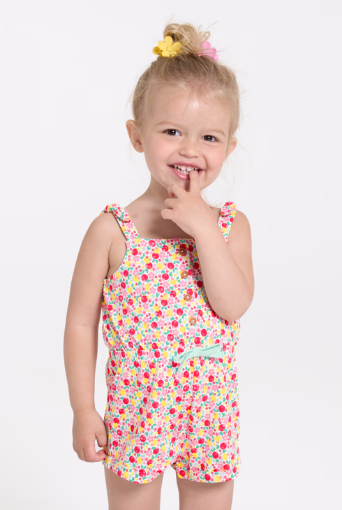 Verspielter mehrfarbiger Kurz-Overall für kleine Mädchen