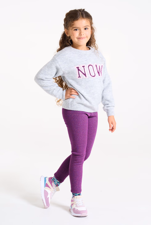 Violette Leggings aus Milanostrick mit Glitzer für Mädchen