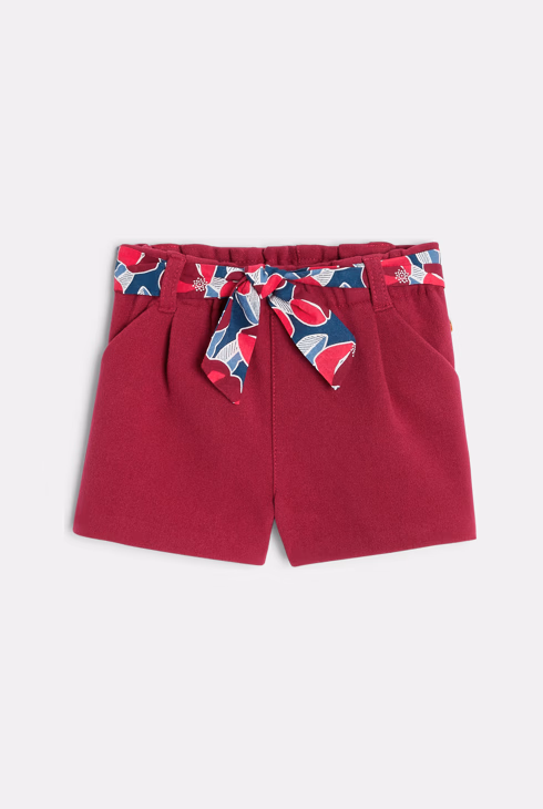 Warme Baby-Shorts mit rosa Gürtel mit Blumenmuster für Mädchen