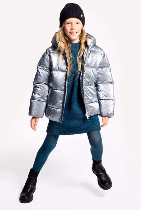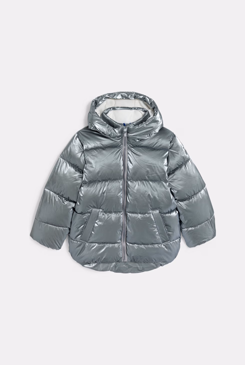 Warme graue Steppjacke mit Metallic-Optik für Mädchen