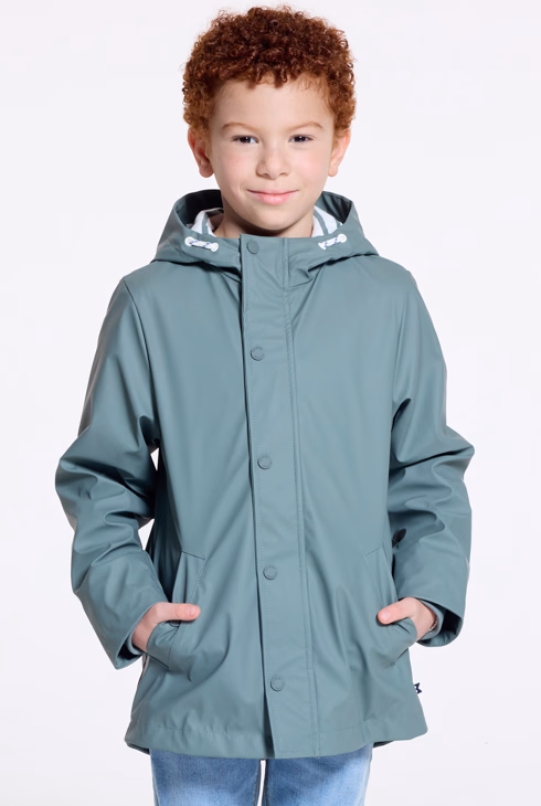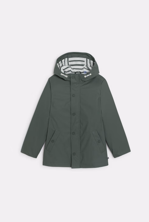 Wasserabweisende khakigrüne Regenjacke mit Kapuze für Jungen