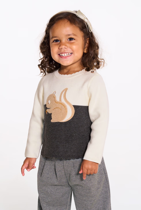 Weiße Strickjacke mit Eichhörnchenmotiv Kleinkind Mädchen