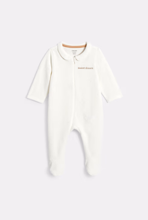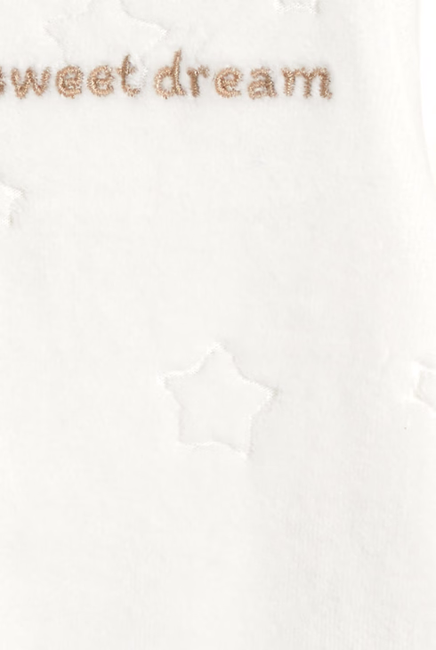 Weißer Strampler aus Samt mit Reißverschluss, Stickereien und Sternen Kleinkind Junge