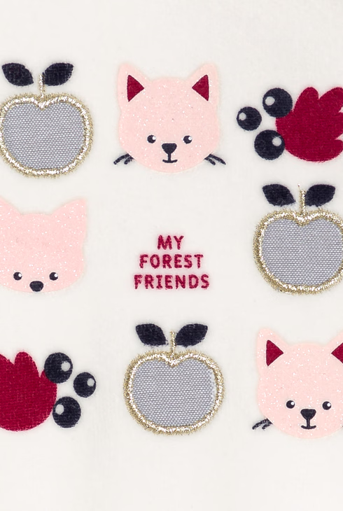 Weißer Strampler aus Samt mit Waldtieren Baby Mädchen