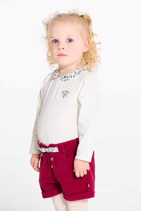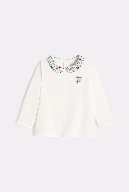 Weißes Baby-T-Shirt mit Blumenkragen für Mädchen