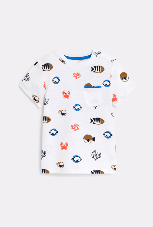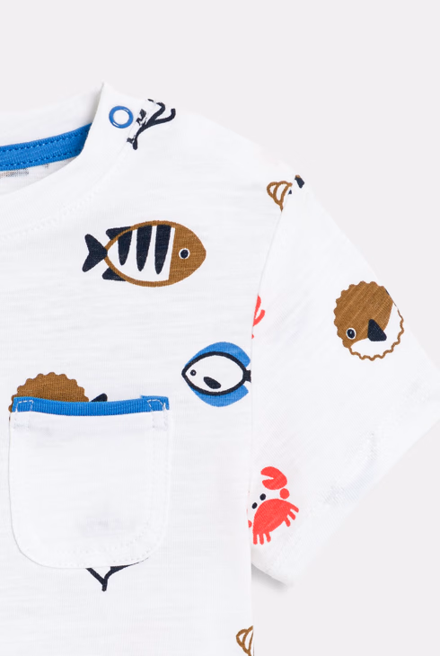 Weißes Baby-T-Shirt mit Fischmotiv für Jungen