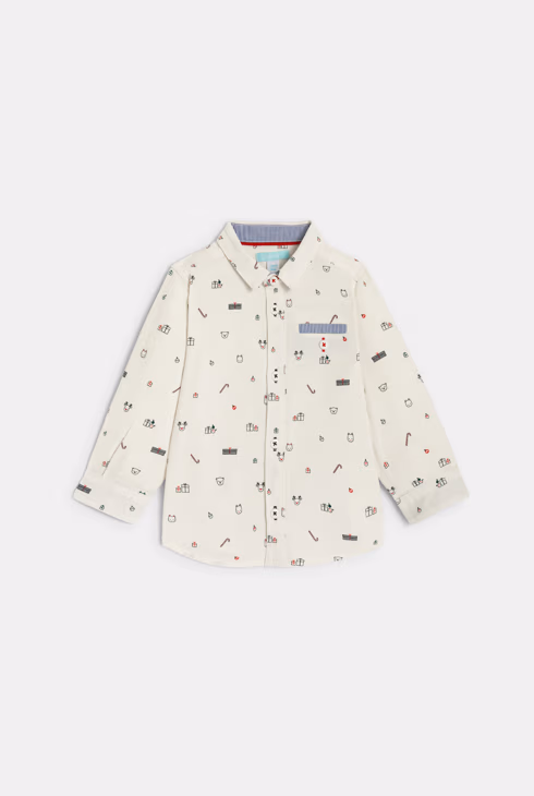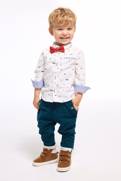 Weißes gemustertes Babyhemd aus feinem Cordsamt für Jungen